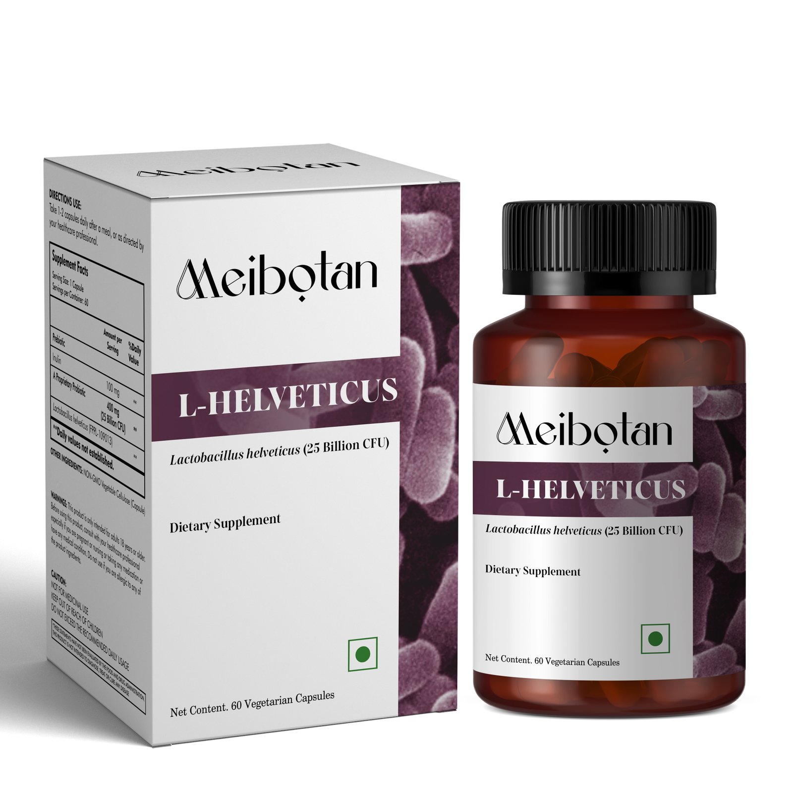 Meibotan Lactobacillus helveticus 25 Billion Support Digestion & Gut Health | For Both Men & Women- 60 Veg Capsules